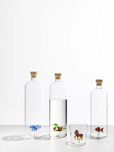 Ichendorf的玻璃製品手感輕盈。耐熱維度低於100度,不可驟冷驟熱。不適用於洗碗機。手工製作,局部可能會有氣泡水紋、杯口捲邊不平、不均勻對稱、煅燒節點不平整、黑點等,選購請知悉。設計師 Alessandra Baldereschi