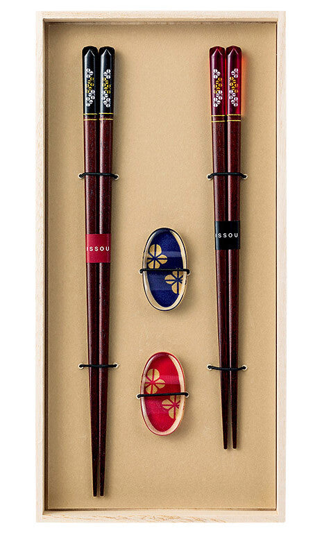 Issou |一雙 櫻花 若狹塗夫婦筷連筷架禮盒